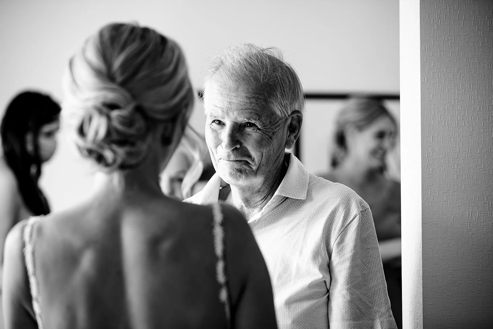 We started the day with R & J at the Elk & Avenue Hotel and spent some time with the ladies and gents whilst they prepped for their special day. It was great seeing these two kick back in good company and be able to relax through the morning. We didn’t expect anything less from these two, with the ladies looking like they were setting up for a spa day and the gents sharing some stories over a beer. These are the times on wedding days that we love as it’s when the spontaneous, unexpected and fleeting moments come together. Their day was no different with J’s Mum and Dad stopping by for a sneaky look at her all dressed up before she left for her first look with her groom-to-be. Meanwhile, R was getting ready and heading out to their chosen first look location.