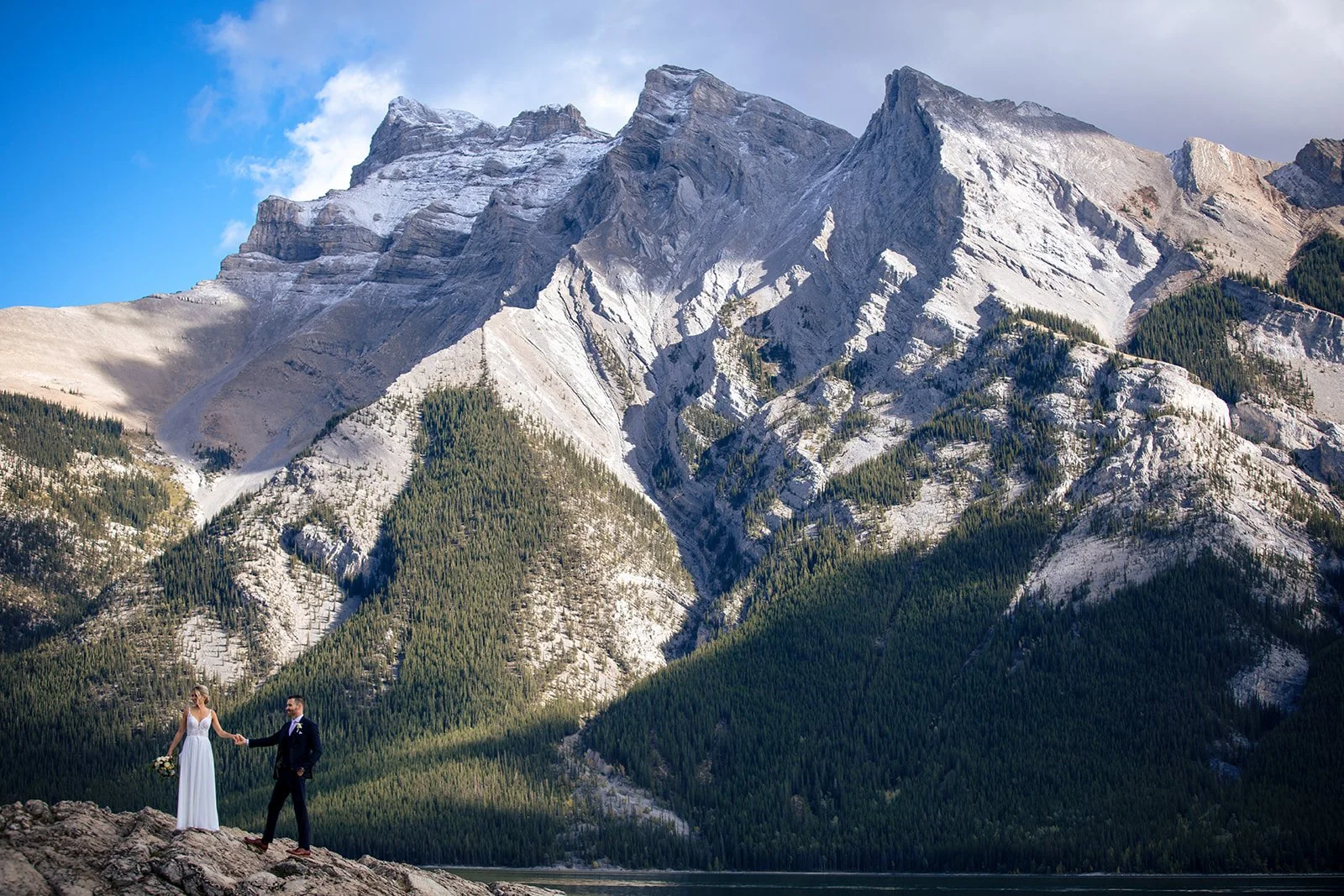 Having met R & J for their engagement photos earlier in Summer we were super excited to see them again for their wedding in Banff! As always in the mountains, the weather is a wild card towards the end of September. Somehow these two parted the snow clouds lingering around that week and enjoyed a beautiful sunny day in the mountains with their closest family and friends.