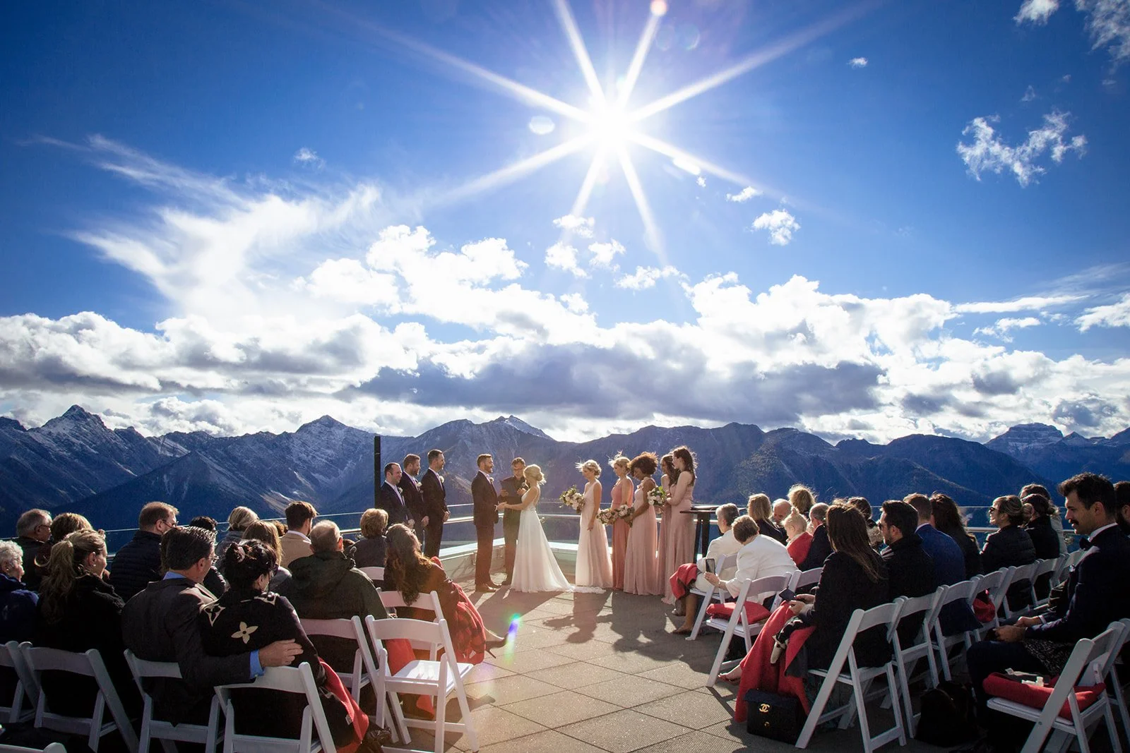 Outdoors Wedding Ceremony at the top of the Banff Gondola