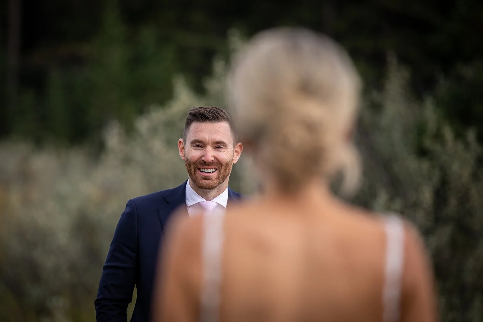 With the plans in place, the wedding party toured in the limo to the first look location where we had Rob all ready to go. We could feel the anticipation starting to build and were really excited for these two to share their moment in the mountains. It was important for them to be able to share their moments together, and with their wedding party before their ceremony at the top of the gondola for some variety in their wedding photos. R & J shared their first look together before we brought over their wedding party to continue the celebrations!