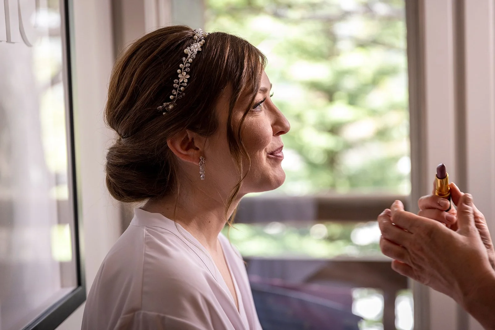 Getting ready with the bride and groom at Buffalo mountain lodge
