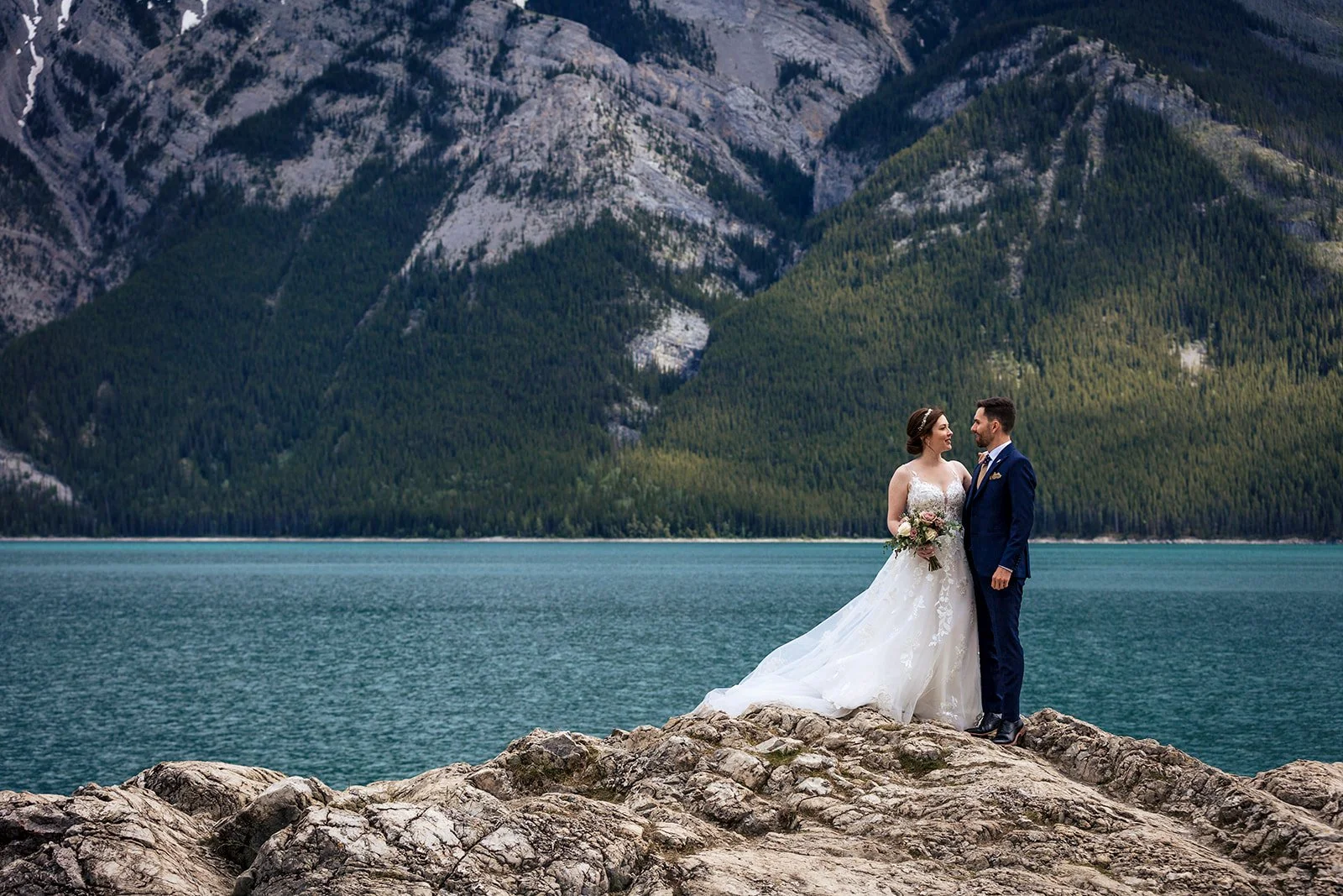 With their first look behind them, we took a short trip to Lake Minnewanka to capture their couples photos so that when they returned, they could really focus on the time they had with their guests.