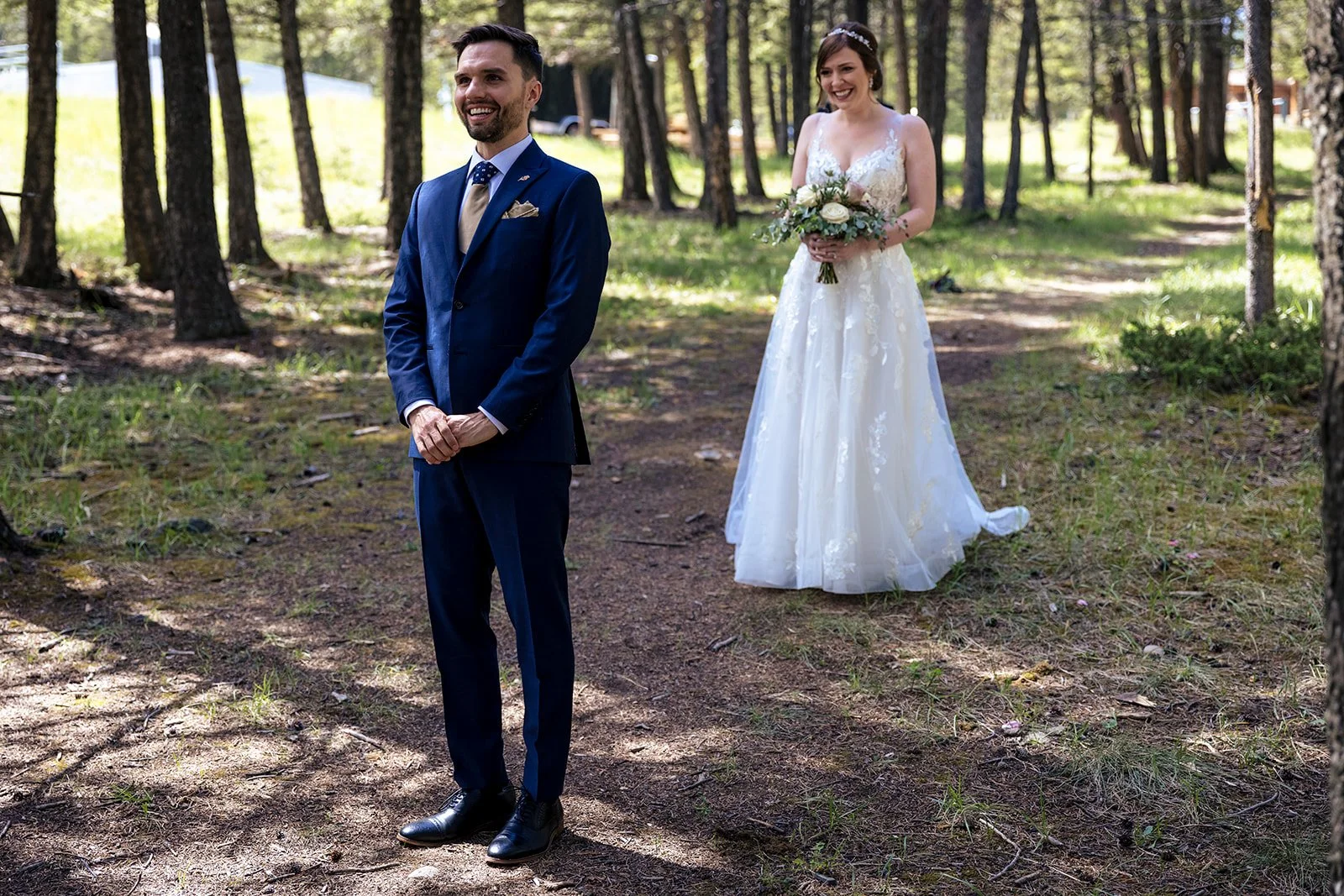 With everything all glammed up and ready to roll, we snuck out for an intimate first look in the nearby forest. These two were so excited (and a tiny bit nervous!) to see each other and start spending some time with each other on their special day.
