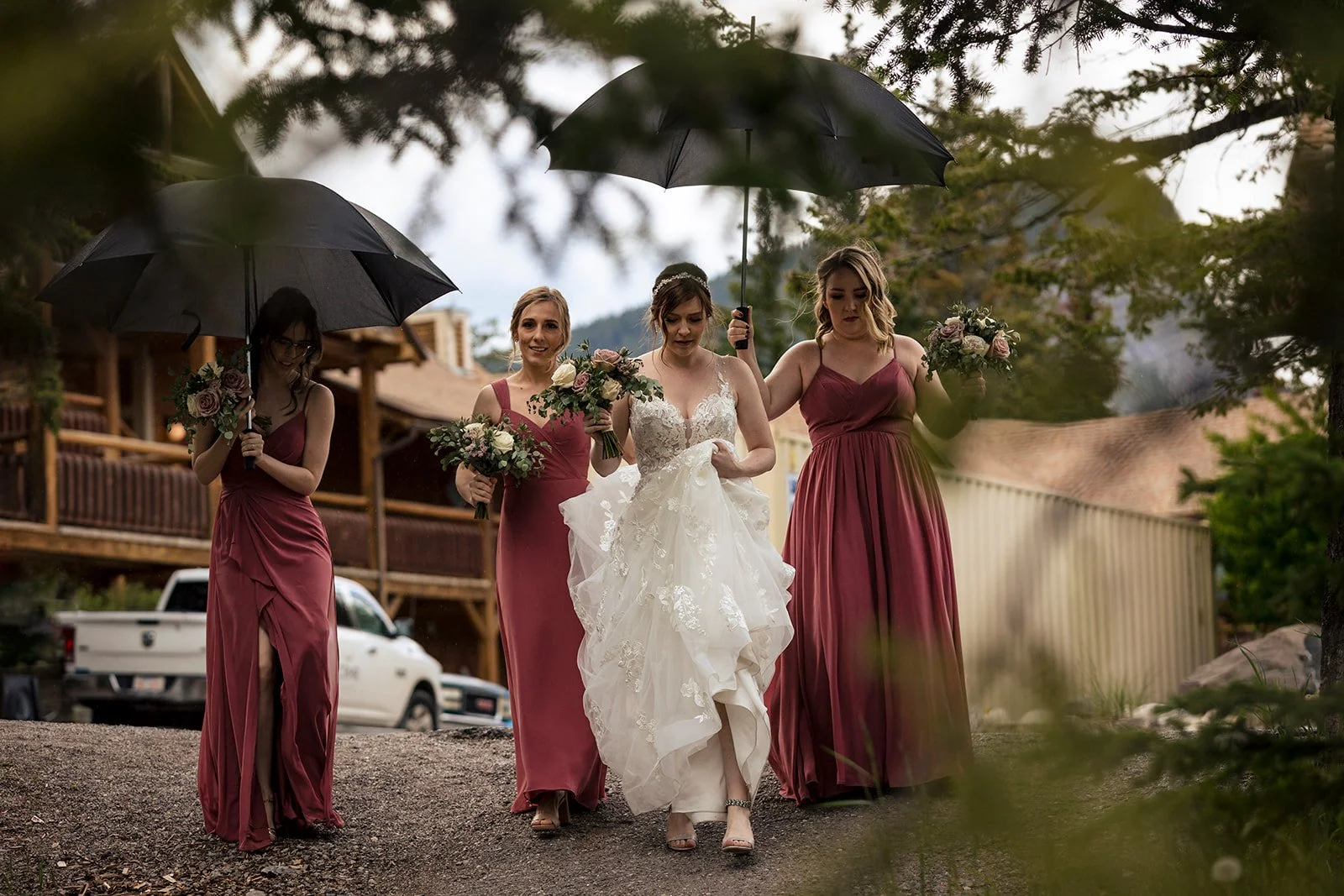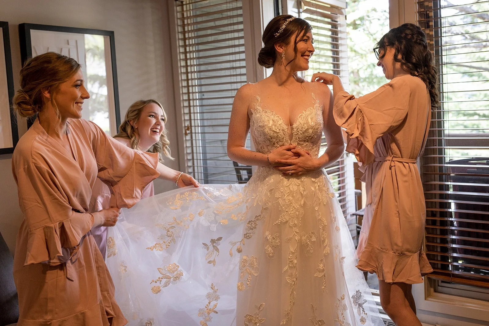Banff locals A & R got in touch about their plans to get married in Banff and we quickly hit it off over our love of adventuring out in the Rockies. We had an amazing morning in the Spring for their engagement photos and had been looking forward to their wedding ever since. We met them to capture them getting ready with their wedding party at Buffalo Mountain Lodge.